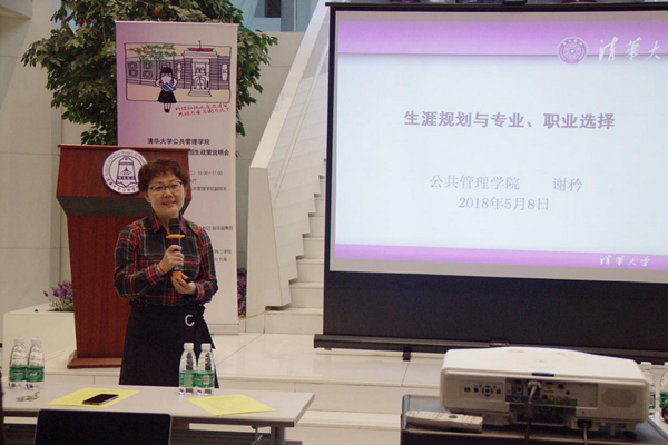 谢矜从生涯发展视角,为到场同学讲解个体从青少年至成年,随年龄增长职业概念的形成以及对职业选择认知的过程,启发同学们思考长远的人生职业生涯规划。谢矜介绍清华公管学院学生工作系统的概况,服务于学生的理念和丰富的社团活动,以及学院推动学生进入公共服务部门就业,服务于国家高层次人才培养的战略目标。