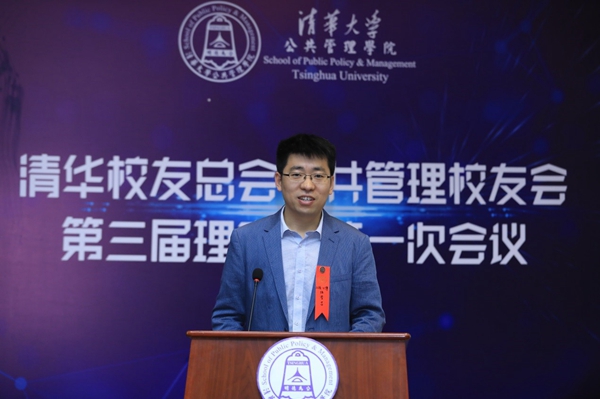 图为清华公管校友会秘书长张秀吉作工作汇报。