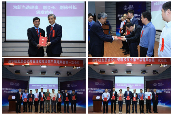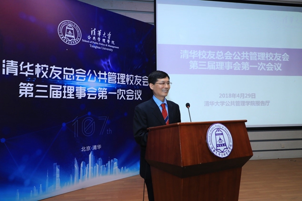 4月29日上午,清华校友总会公共管理学院校友会(以下简称“清华公管校友会”)第三届理事会第一次会议在学院报告厅召开。会议由清华公管学院党委书记彭宗超主持。院长薛澜,党委副书记谢矜,副院长杨永恒、朱旭峰、王亚华,及公管校友会理事会70多位理事出席此次会议。