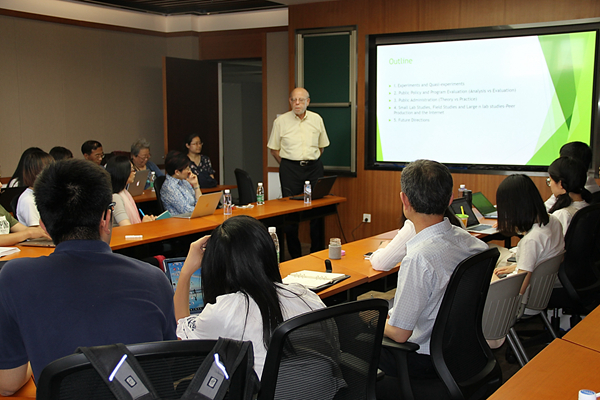 亚利桑那州立大学公共事务学院教授Stuart Bretschneider以“公共管理与公共政策中的实验与准实验研究”为题发表演讲。清华公管学院政治与公共政策研究所所长刘志林主持讲座,副所长戴亦欣点评。清华公管学院教师刘求实、曹峰、梁正等,同学院40余位学生出席了讲座。
