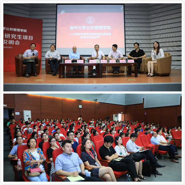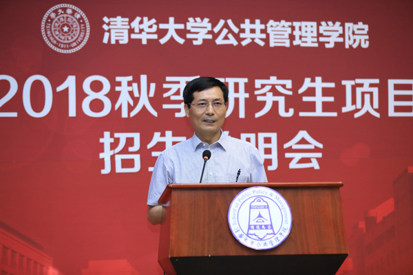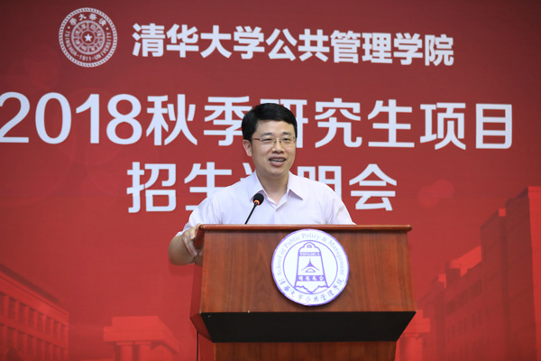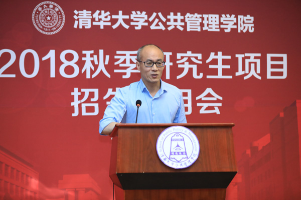 8月26日下午,清华大学公共管理学院在学院一层报告厅成功举办2018年秋季研究生招生说明会。说明会由学院党委书记彭宗超主持,学院院长薛澜、副院长王亚华、学位分委员会主席巫永平、副院长朱旭峰分别就学院发展及未来前景、学院教学项目总体情况、学术硕士和博士项目、以及国际双硕士学位项目进行介绍。说明会邀请公管学院在读硕士生首芸云及博士生王红帅分享研究生学习经验。学院院长助理、教学办主任慕玲与学院教学办、外办老师参与会议。出席说明会的各位老师为同学们提出的招生相关问题作现场答疑。