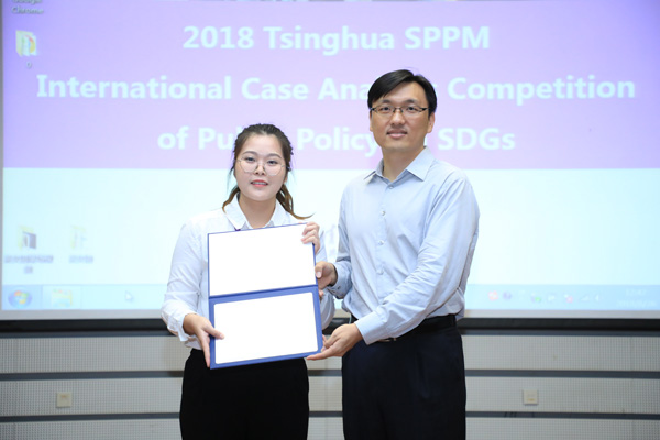 经过四个小时的激烈角逐,来自清华大学、不列颠哥伦比亚大学(UniversityofBritishColumbia)、杜伦大学(DurhamUniversity)的同学组成的国际队伍“LWS”取得桂冠,他们的案例分析报告聚焦北京打工子弟教育问题,从第4项可持续发展目标的角度,对“提供包容和公平的优质教育,让全民终身享有学习机会”进行了研究和探索。评委朱旭峰教授为该队颁发了获奖证书。