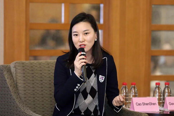 图为曹珅珅谈AI技术与互动平台的发展。