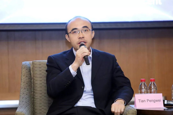 图为田鹏伟谈AI技术与产业发展。