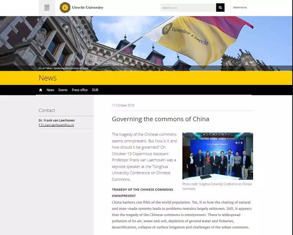 媒体报道|荷兰乌得勒支大学报道2018公共事物治理国际研讨会