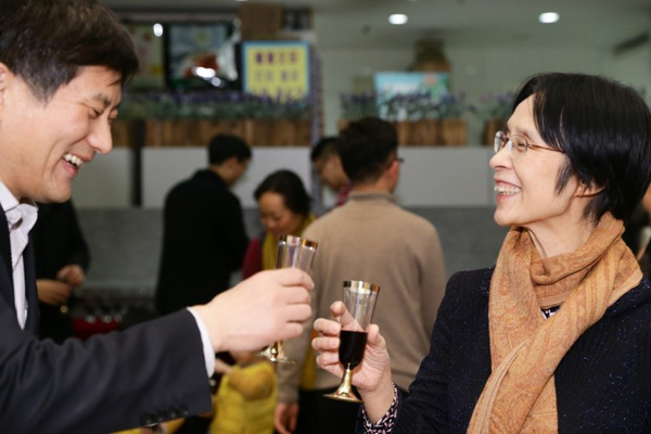 晚会的最后一项——新年酒会,学院领导与师生欢聚一堂,举杯共饮贺新年,把酒言欢,彼此送上最美好的新年祝福,欢声笑语萦绕在学院大厅。清华大学公共管理学院2019年晚会在和谐融洽的气氛中圆满落幕。