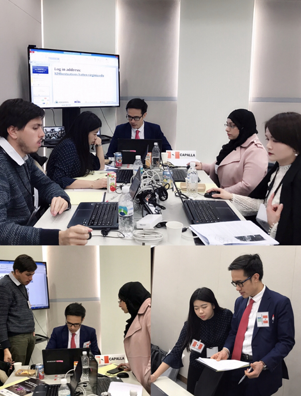 大赛评委综合模拟赛成绩、最后陈述展示表现、选手谈判及团队合作情况等因素进行打分。最后,大赛主办方韩国KDI School代表队成为本赛区优胜者。