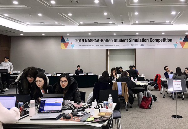 2月23日,2019年NASPAA-Batten全球学生模拟大赛亚洲区比赛在韩国KDI School of Public Policy and Management举行,本届大赛的主题为“全球移民与难民危机”。大赛在全球11个赛区同步举行,吸引了来自27个国家137所院校的585名同学参赛。清华公管学院由IMPA硕士项目主任郑振清副教授担任领队,由案例中心助理城玥负责组织协调,派出五名硕士生参赛,他们分别是MPA项目的中国学生王晨杰,IMPA-BRI项目的巴基斯坦学生Bushra Batool Zaidi,MPP-SDG项目的越南学生Lincoln Quang Duong,文莱学生Rasyidah Ibrahim和哥伦比亚学生Andrés Melendro Blanco。经过为期一天的激烈角逐,清华大学代表队成功进入最后陈述展示环节,表现优异。