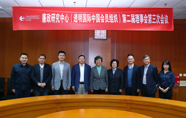 2019年3月11日上午,廉政研究中心(透明国际中国会员组织)(以下简称“中心”)第二届理事会第三次会议在清华大学公共管理学院成功举行。中央纪委国家监委国际合作局有关领导、理事会韩景阳主席、任建明副主席、过勇秘书长以及中心理事和秘书处工作人员共同出席了会议。