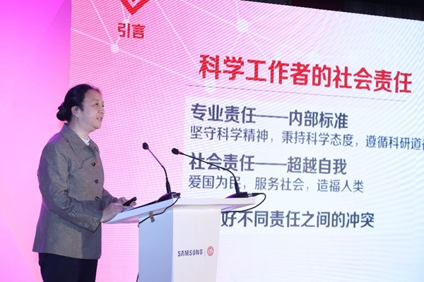 启动仪式后,由清华大学公共管理学院承办的“女性、科技、慈善”论坛也在当日上午举行,清华公管学院院长助理刘辉主持。论坛上,优秀女科学家代表方新发表“担起社会责任,将爱洒满人间”的主题演讲,鼓励在座的心中怀有科学梦想的女生脚踏实地做科研,扎扎实实做学问。随后,4名优秀女性科技工作者及科学家代表等以座谈形式,就提高女性参与科技创新的主动性,激励更多女性认识自我、发展自我和实现自我,帮助更多女性积极投身科研事业,助力国家科技创新型人才培养等议题进行了深度探讨。清华公管学院副教授贾西津作为慈善领域代表参与座谈会,并勉励在座的同学,打破性别障碍,勇于追求梦想,先拥有完整的人格,再发挥女性的优势。