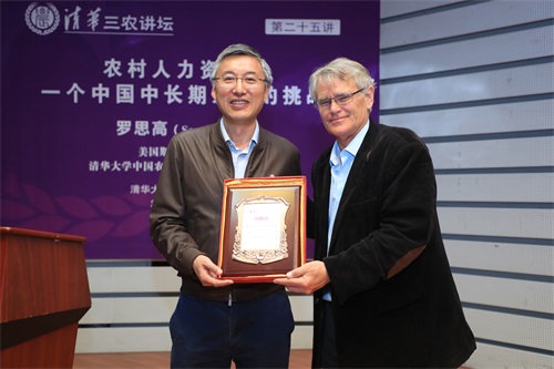 何宇鹏为罗思高颁发“清华三农讲坛”纪念证书。侯晓军 摄