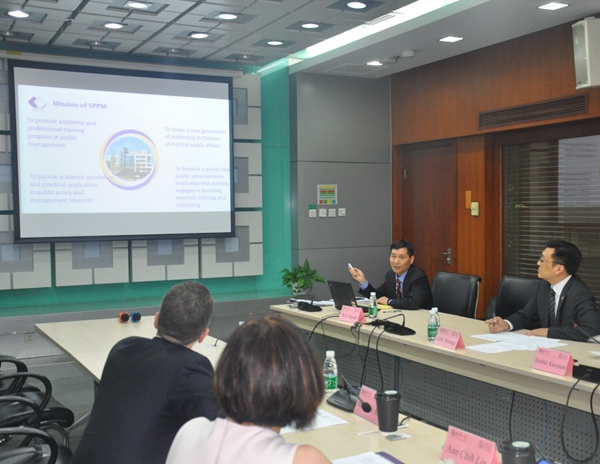 彭宗超书记介绍了清华公管学院的基本概况和近年来在学科建设、人才培养、科学研究、教研平台、国际合作方面所取得的进步和发展,希望进一步深化清华公管学院与密歇根大学公共政策学院的合作,扩大国际创新交流平台。