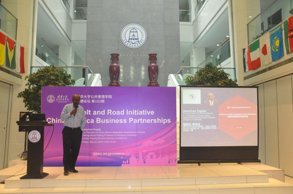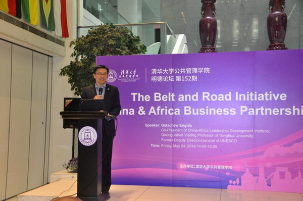 5月24日下午,由清华大学公共管理学院主办的明德论坛第152期在公管学院一层大厅举办。清华中非领导力发展中心联合主任、清华大学杰出访问教授、联合国教科文组织原副总干事格塔丘·恩吉达先生(Mr. Getachew Engida)在论坛上以“一带一路中非合作伙伴关系”为题发表演讲。清华公管学院副院长朱旭峰教授主持本次论坛。恩吉达先生在论坛上和清华公管师生一起探讨了中非战略合作伙伴关系。