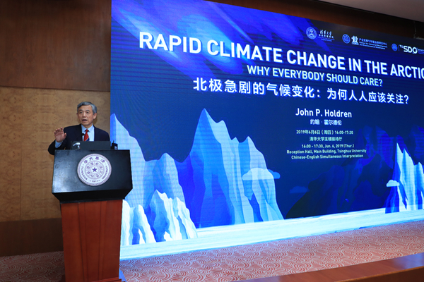 6月6日,由清华大学公共管理学院主办,清华大学产业发展与环境治理研究中心(CIDEG)和清华大学全球可持续发展研究院(TUSDG)联合承办的前奥巴马总统科技顾问约翰·霍尔德伦主题演讲在清华大学主楼接待厅召开。霍尔德伦教授以“北极急剧的气候变化:为何人人应该关注?”为题发表演讲,此次活动由清华大学文科资深教授、清华大学公共管理学院教授、苏世民书院院长薛澜主持。哈佛大学肯尼迪政府学院贝尔弗科学与国际事务中心环境与自然资源项目主任Henry Lee,清华公管学院教授潘洁,清华公管学院副教授、CIDEG副主任陈玲,清华公管学院副教授、CIDEG主任助理赵静,霍尔德伦教授助理张芳等嘉宾及超过150位校内外学生和代表出席本次活动。