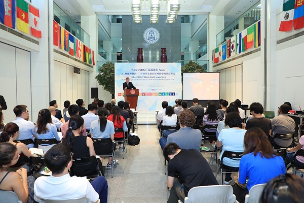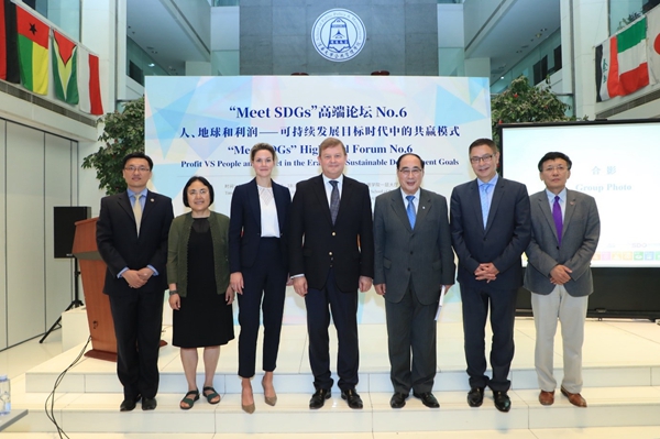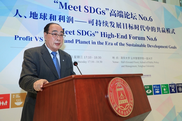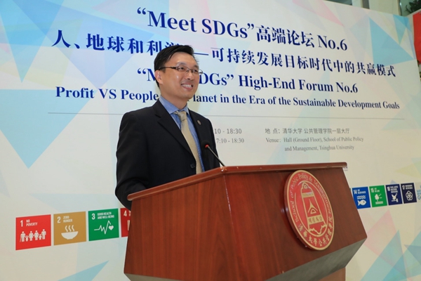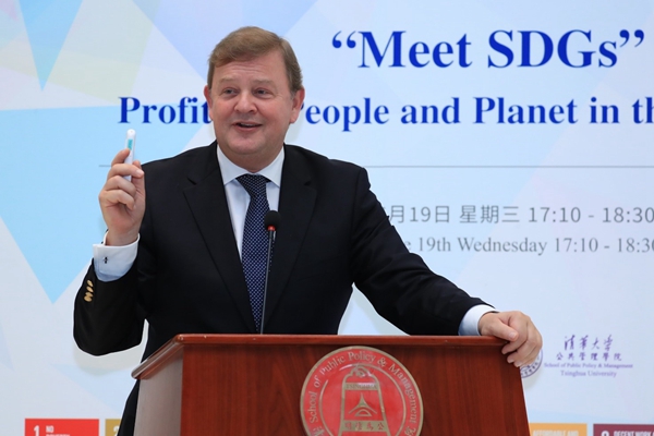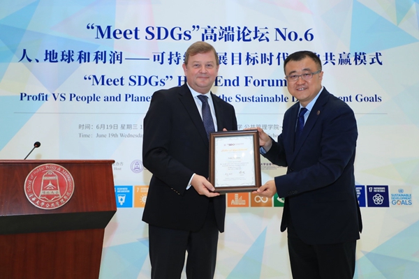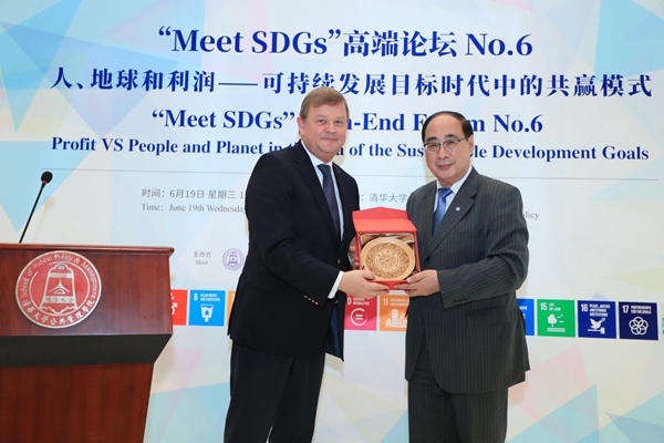 2019年6月19日下午,由清华大学公共管理学院主办、清华大学全球可持续发展研究院(TUSDG)承办的“Meet SDGs”高端论坛No.6在清华大学公共管理学院一层大厅召开。荷兰皇家帝斯曼集团(Royal DSM)首席执行官谢白曼(Feike Sijbesma)先生发表主题演讲《全球化世界中的可持续领导》。清华大学公共管理学院副院长、TUSDG执行院长朱旭峰教授主持本次论坛,TUSDG联席院长、联合国前副秘书长吴红波教授致开幕辞。Royal DSM中国总裁蒋惟明博士,Royal DSM首席执行官特别顾问Floor Saris女士,Royal DSM GA/PA高级经理王海燕女士,Royal DSM中国总裁办公室经理陈蕾女士;清华大学副校长兼教务长、TUSDG理事长杨斌教授,清华大学苏世民书院常务副院长潘庆中教授,清华大学苏世民书院副院长钱小军教授等百余位校内外观众出席本次论坛。