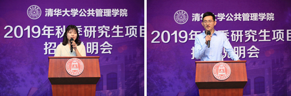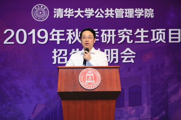 8月18日下午,清华大学公共管理学院在学院一层报告厅成功举办2019年秋季研究生项目招生说明会。说明会由学院院长助理、教学办主任慕玲主持,学院党委书记彭宗超教授、副院长王亚华教授、学位分委员会主席巫永平教授、副院长朱旭峰教授分别就学院发展及未来前景、学院教学项目总体情况、学术硕士和博士项目以及国际双硕士学位项目进行介绍。说明会邀请公管学院在读硕士生柳馨及博士生王红帅分享研究生学习经验,公管学院程文浩教授同时出席,校内外200多名同学热情参与。