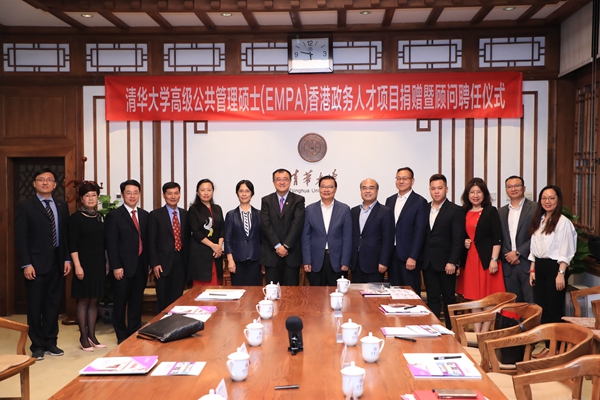 2019年8月20日,清华大学高级公共管理硕士(EMPA)香港政务人才项目(以下简称“EMPA香港政务人才项目”)捐赠暨顾问聘任仪式在工字厅隆重举行。全国人大常委会委员谭耀宗先生,香港中联办社工部薛惠君部长,宝新集团首席执行官陈少煌先生,深圳市荣超慈善基金会代表,深圳荣超集团董秘杨超先生,黄廷方慈善基金代表、信和集团中国业务总经理黄若红女士,以及清华大学副校长、教育基金会理事长杨斌教授,清华大学公共管理学院(以下简称“清华公管学院”)院长江小涓教授、清华大学教育基金会秘书长袁桅女士,清华公管学院党委书记彭宗超教授、副院长朱旭峰教授、EMPA香港政务人才项目主任潘洁教授等出席仪式。清华公管学院副院长王亚华教授主持仪式。