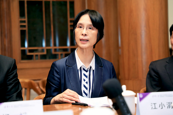 袁桅秘书长向捐赠方颁发捐赠证书、杨斌副校长和江小涓院长见证