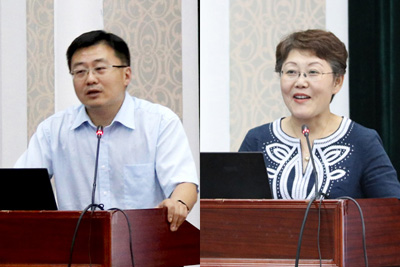 刘辉(左一)、王泽青(右一)在会上做主题发言