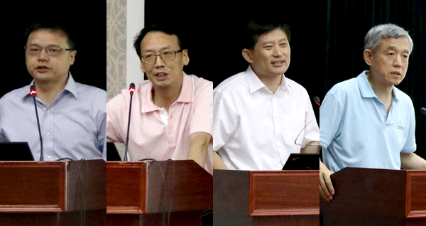 杨永恒(左一)、沈勇(左二)、孟庆国(右二)、薛澜(右一)在学科建设与科研专题中发言