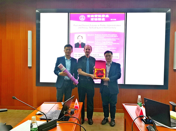 公管学院副院长杨永恒教授主持本次讲座并向罗森布鲁姆教授赠送纪念品,《公共管理评论》副主编兼编辑部主任梅赐琪副教授进行了精彩点评。