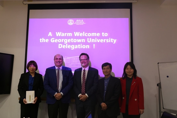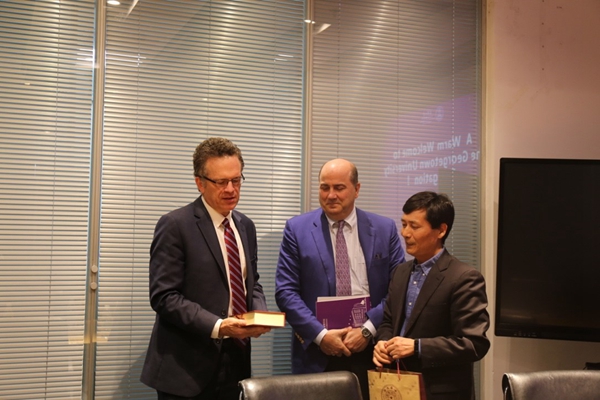 10月18日下午,乔治城大学副校长Thomas Banchoff、乔治城大学首席运营官Geoff Chatas、乔治城大学在华联络处代表Frances Yuan一行三人来访清华大学公共管理学院。清华公管学院党委书记彭宗超会见了来宾。双方就进一步加强国际合作进行了对话交流。