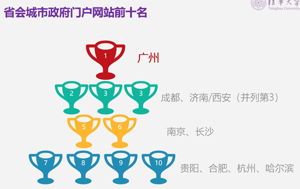 省会城市政府网站中,广州和成都位列前两名,济南和西安并列第三,南京、长沙、贵阳、合肥、杭州和哈尔滨分列五至十名。