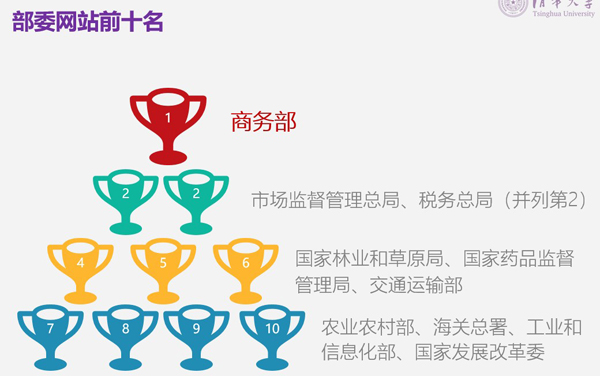 部委网站中,商务部继续保持第一名,市场监督管理总局和税务总局并列第二名,国家林业和草原局、国家药品监督管理局、交通运输部、农业农村部、海关总署、工业和信息化部、国家发展改革委分列四至十名。