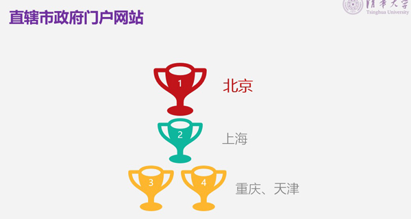 直辖市政府门户网站中,北京和上海位列第一和第二名。