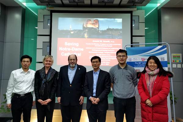 1月2日晚,清华大学应急管理研究基地(以下简称“基地”)第88期学术沙龙在清华公管学院302教室举行,哈佛大学肯尼迪学院危机领导力项目联合主任Arnold M. Howitt博士受邀进行了题为“拯救巴黎圣母院:应对大型火灾”的讲座,基地副主任吕孝礼副教授主持了本次讲座,学院党委书记、基地主任彭宗超教授、中央党校(国家行政学院)、基地毕业生钟开斌教授担任本次沙龙评论人。来自清华大学、中央党校(国家行政学院)、中国矿业大学等校内外师生参加了本次讲座。
