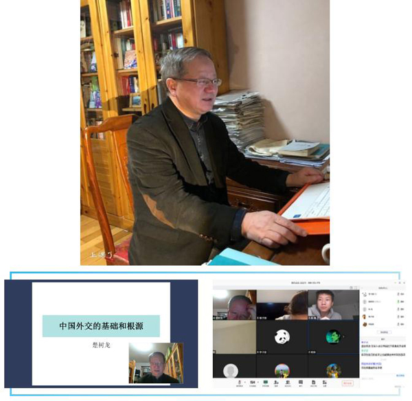 经过老师与助教半个月学习与准备,2月17日晚,由楚树龙老师为MPA学生主讲的《中国外交战略与政策》第一堂线上课程如期开课。课堂上,楚老师先采用雨课堂进行了课程知识讲授,后采用腾讯会议视频模式进行了师生互动交流,主要探讨了构成中国外交的基础与根源,楚老师结合时事、历史以及个人经历,用通俗易懂的方式给同学们上了生动的一课。