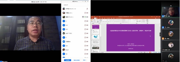 5月7日晚,清华大学公共管理学院社会创新与乡村振兴研究中心(以下简称中心)通过网络直播举办了清华社会创新与乡村振兴沙龙(第11期),中国农业大学人文与发展学院副教授董强应邀做“公益组织推动乡村发展的策略与价值:以波多罗村、郝堂村、河边村为例”主题分享。来自清华大学、北京大学、北京邮电大学、中国农业大学、上海财经大学、上海交通大学等高校师生以及中国青基会、中国扶贫基金会、友成基金会、中国青少年发展基金会、北京情系远山基金会、河南省周口市统计局、湖南日报社等多家社会组织、政企事业单位工作人员及媒体人士近150人参加沙龙。