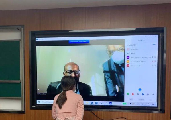 为了破解远程答辩存在的种种难题,教学办以多种方式为学生提供全方位帮助。第一,编撰中英文版线上答辩操作指南,针对答辩具体流程,以及如何使用ZOOM、腾讯会议等软件进行详细指导。第二,提前测试,保证每位学生在答辩前能够掌握远程答辩的软件和设备使用。一次测试不成功,安排第二次测试,直到学生完全掌握软件和设备使用为止。第三,制定详尽的应急预案,包括组织留学生录制有声PPT、收集电话、通知紧急联系电话等,对现场可能出现的问题进行预防。第四,针对特殊困难学生进行“一对一帮扶”,确保无一人掉队。个别留学生存在网络条件差或无法登陆微信和腾讯会议的问题,为了保证学生顺利答辩,教学办克服困难,发动本国同学帮助,协调3名当地学生支持,在答辩当天由同学支持微信、网络通讯等,完成答辩。