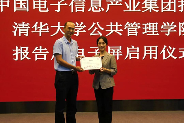 8月26日,中国电子信息产业集团捐赠清华大学公共管理学院报告厅电子屏启用仪式在学院举行。