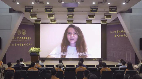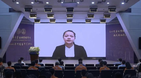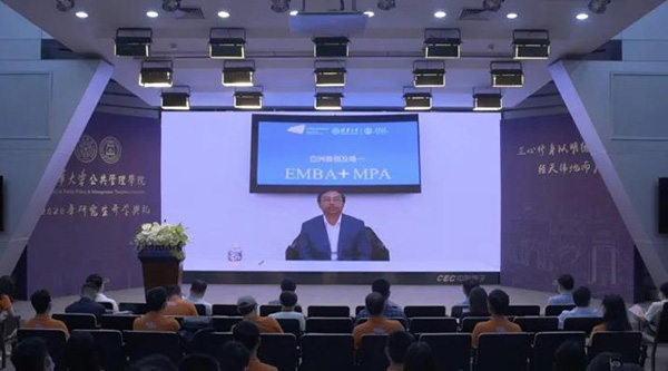谢矜首先介绍了出席开学典礼的学院领导和嘉宾,并代表学院向419名研究生新同学表示热烈欢迎。2020级研究生新生来自世界各地、五湖四海,包括博士生43名、学术硕士生59名、MPA 234名;此外,还包括高级公共管理香港政务人才项目29名、清华大学-香港城市大学MPA-EMBA项目20名、全英文硕士项目国际学生34名。他们是清华公管的新主人。