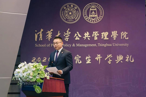 教师代表陈天昊致辞,他表示进入2020年,无论是个人还是整个国家,都遭遇了空前的挑战。在时代的路口,同学们进入清华公共管理学院深造,所肩负的使命便是在未来推进国家的善治。陈天昊希望同学们在开启清华公管新征程前做好三个方面的准备:一是打破学科壁垒,直面前沿挑战。希望大家能够不囿于自身学科背景的局限,在多元学科之间“纵横捭阖”,这应该成为同学们未来研究及工作的“日常”;二是聚焦中国问题,发掘本土实践。公共管理是一门“浸泡”在实践中的学科,无时无刻不需要从公共治理的实践中吸收“养分”。而今天中国的国家治理也正在不断贡献新的经验与问题;三是富有人文情怀,追寻公共价值。对于公共管理者而言,在面临艰难选择时,应当秉持公共价值,有为“生民立命”的责任与担当。希望大家共同携手,呵护内心中的价值,始终不忘“明德止善、天下为公”。