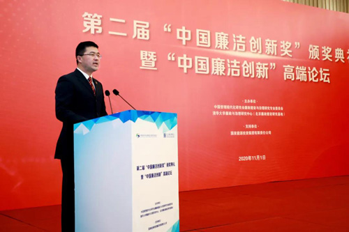 2020年11月1日,第二届“中国廉洁创新奖”颁奖典礼暨“中国廉洁创新”高端论坛在北京成功举办。来自全国人大、中央纪委国家监委、司法部等中央国家机关以及国家能源投资集团、中国石化等中央企业的相关领导,来自全国各地党政机关、各类企事业单位、社会组织等各方面的实务界代表,来自中共中央党校(国家行政学院)、清华大学、北京大学等高校及科研院所的学术界代表,以及中央媒体和相关领域的代表共200余人参加。