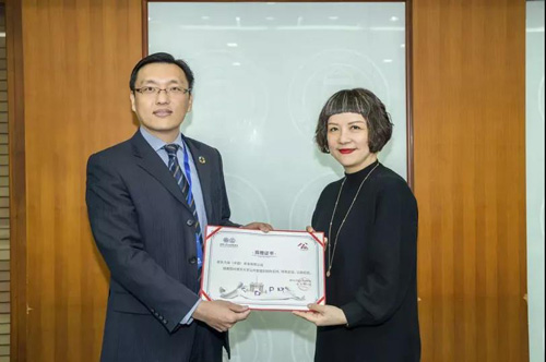 朱旭峰向王珏颁发捐赠证书并赠送纪念品。双方合影留念。