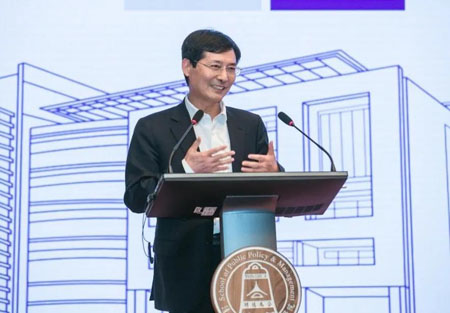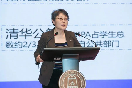 仪式上,江小涓首先代表全院师生对明德一期同学加入公管学院表示热烈欢迎,对明德项目“扬帆起航”表示祝贺。她指出学院设立行政管理辅修项目,是希望能够吸引清华优秀本科生以辅修项目学习的形式加入公管学院,也是学院丰富教学体系的重要举措。她对明德一期的同学提出两点要求。一是要在学习中多思考多观察,学好公管课程不仅要学懂记住知识点,更重要的是要多角度思考,在掌握学科基础知识的同时也主动去更多理解社会。二是要牢记“明德为公”的院训,希望同学们通过项目的学习,能够理解学科要求,做到全面发展,从而更有公心、更加包容。最后,江院长欢迎有志于从事公共管理实践工作和学术研究的同学报考公管学院的研究生项目,并祝愿明德一期同学学习顺利,未来可期。