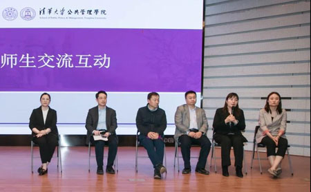 在师生交流环节,在场老师上台与现场同学交流互动。同学们纷纷就自己关心的问题进行了提问。慕玲老师对同学们高度关注的案例大赛报名流程、招生政策等问题进行了详细地解答。周绍杰老师对项目课程学分认定、公共管理实践类型进行了介绍。王名教授针对学生提出的对“君子不器”的理解做了精彩的解读。