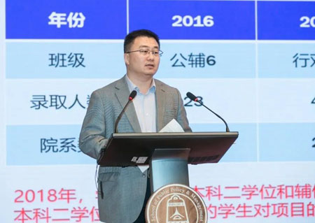 在第三个环节,周绍杰副教授作为项目主任对明德项目的设立背景、培养方案、招生事项进行了全面介绍。公管学院从2016年开始设立行政管理辅修专业,2017年招收行政管理本科第二学士学位,丰富了学院的教学体系。2020年,学校依据国务院学位办、教育部相关文件精神,执行辅修学位政策,学院将本科二学位、辅修专业项目转型成为行政管理辅修“明德项目”。历经5年时间的发展和完善,学院设立的本科项目满意度不断提高,获得全校各专业本科同学的高度认可。明德一期招收了来自24个院系的60位本科同学,希望未来能有更多的优秀本科同学加入明德项目。