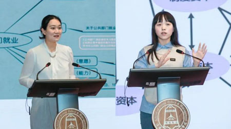 公管学院2019级博士生李子晗同学和建筑学院2019级本科生蒋思杨作为学生代表进行发言。李子晗同学是公管学院首届行双毕业生,她分享了自己就读公管行政管理本科辅修和二学位项目并最终选择来到公管学院读博的心得体会。蒋思杨同学是明德一期在读学生,她以“明德以解惑”为题,介绍了自己选择修读公管学院行政管理辅修项目的初心和收获。