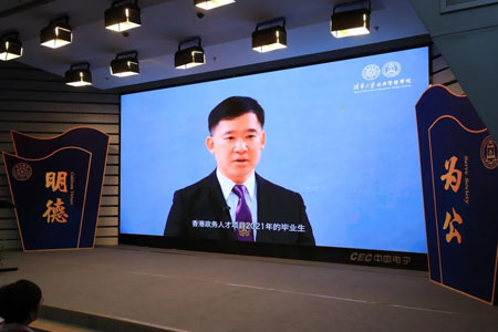 因为疫情的原因,在香港的同学无法出席在北京清华园举行的毕业典礼。但是,我们非常高兴可以在香港办一个分场,跟毕业班的同学一起毕业。我们毕业班的同学来自不同的行业和背景,有的来自政治团体、地区服务团体、志愿者团体、劳工团体,也有来自不同的行业,比如说科技界、青年界、工程界、银行、服务界,但是我们都有一个共同的目标,就是希望在学习两年半以后,回到香港,把我们学会的、领悟到的,运用到香港公共管理和未来的香港管治方面,以贡献我们的绵力。