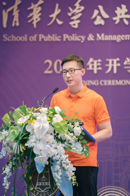 2021级MPA新生代表方灿宇发言。方灿宇表示自己从小拥有一个“清华梦”,如今圆梦清华激动无比。他结合自己在市场监管领域的执法工作经验分享了个人认识:在工作中坚持去办一些很多人不想办或者认为办不了的案件,始终相信阳光照不到的地方,可能就是最需要我们的地方。他分享了自己一直从事执法工作的心路历程,坚持来自于热爱,并持续努力地寻找工作的价值。方灿宇表示求学之路注定有诸多不易,作为清华学子一定要努力扎根清华,砥砺爱国奉献的清华品格;扎根公管,秉承上医医国的赤子之心。传承行胜于言的优良校风,不断锤炼本领,增长才干,携手共圆中国梦。