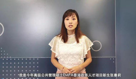 清华大学高级公共管理硕士(EMPA)香港政务人才项目2021级新生代表张曼莉发言。张曼莉表示她作为香港政务人才代表担当了为国家在香港做好“一国两制”的使命,要让香港特区的成功经验写进新时代国家治理体系的篇章。她希望通过聚首清华,以探索求是的态度分析香港问题的根源,唤醒更多爱国爱港人士同行创新,借用在EMPA课程中学习到的祖国与全球治理的发展理论,助力香港更好地融入国家发展大局。她表示将在新的起点为香港的未来、为国家的发展砥砺自我,不负韶华,不负清华大学的期望。奋发前进,做一名植根中国、面向世界、慎于思考、敢于改革、勇于创新、善于治理的清华人,为国家、为香港出力!