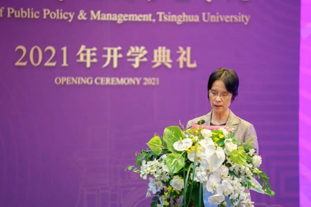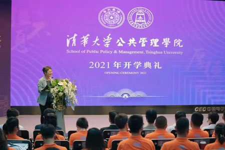 谢矜首先介绍了出席开学典礼的学院领导,并代表学院向490名研究生新同学表示热烈欢迎。2021级研究生新生来自世界各地、五湖四海,包括博士生46名、学术硕士生57名、MPA 236名;此外,还包括高级公共管理硕士香港项目59名、清华大学-香港城市大学MPA-EMBA项目26名、全英文硕士项目留学生66名。他们是清华公管的新主人。