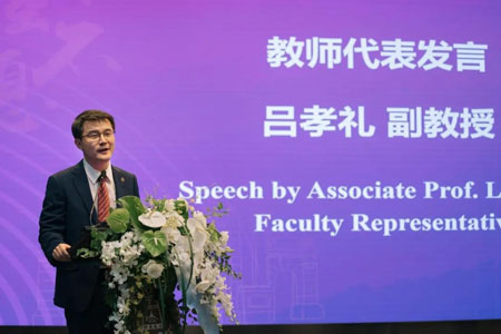 公管学院副教授吕孝礼作为教师代表致辞。他从自己的观察和经历出发为新生们提出几点建议:首先,重新思考研究和工作中的价值创造。其中包含了两个要素:一个要素是可以无愧于心的互动对象,这个互动对象不仅仅是以往的家人、朋友,可以是高水平学术同行、或者是城市的老百姓,从而努力产生学术价值和公共价值;另一个要素是把价值的判断拉向纵深,从更长远的角度来看待今天的选择和产出。第二,“理解”并拥抱多样性。希望大家在未来的学习和工作中,不简单去苛责另一种多样性的存在,多去抓住与自己惯性思维认知不符的瞬间,进而尝试并追问成因。第三,希望大家做更专业的自己。对于MPA同学、学术研究生同学来说,需要从自己的领域来提升专业性的能力。吕孝礼对新生表达了衷心的祝福,希望他们能在经历风雨历练、精工锻造之后,为社会创造更多公共价值,拓展理解和解释公共管理现象的知识边界。