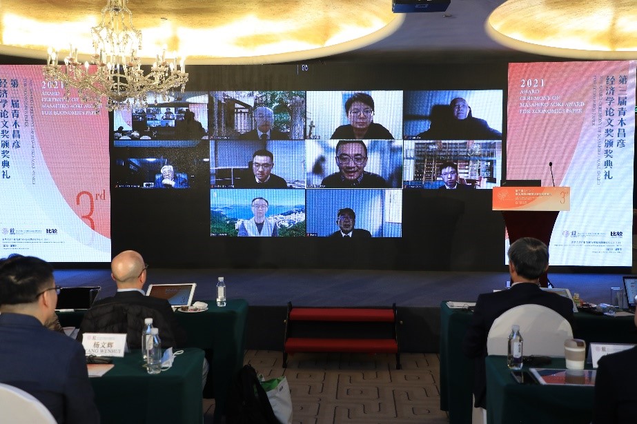 12月18日下午,第三届“青木昌彦经济学论文奖”颁奖典礼在文津酒店隆重举行。本次颁奖典礼作为本届论文奖的高潮环节,现场揭晓了第三届“青木昌彦经济学论文奖”优胜奖和提名奖获得者。青木昌彦经济学论文奖初审委员代表、评审委员代表、入围投稿人、往届获奖者代表,以及CIDEG部分理事、学术委员通过线上线下的方式共同出席了颁奖典礼。颁奖典礼由奖项组委会清华大学产业发展与环境治理研究中心(CIDEG)和《比较》杂志共同举办,由清华大学产业发展与环境治理研究中心主任、清华大学公共管理学院长聘副教授陈玲主持。本次颁奖典礼通过CIDEG官方视频号和直播间在线直播,线上线下有近千名观众观看了颁奖典礼。