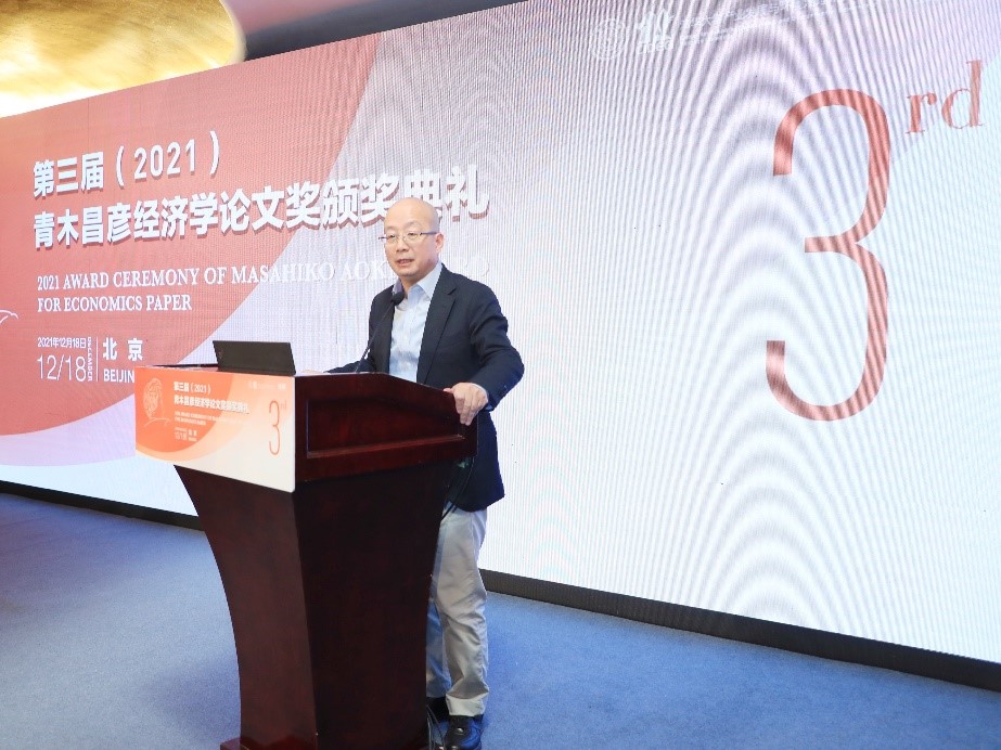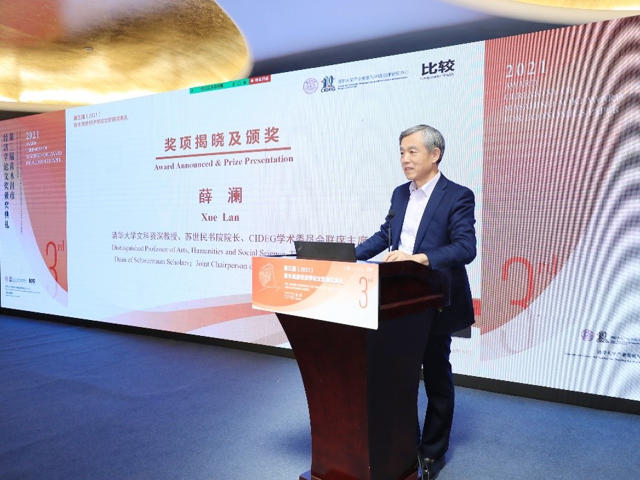 清华大学文科资深教授、苏世民书院院长、青木昌彦经济学论文奖评审委员薛澜揭晓奖项