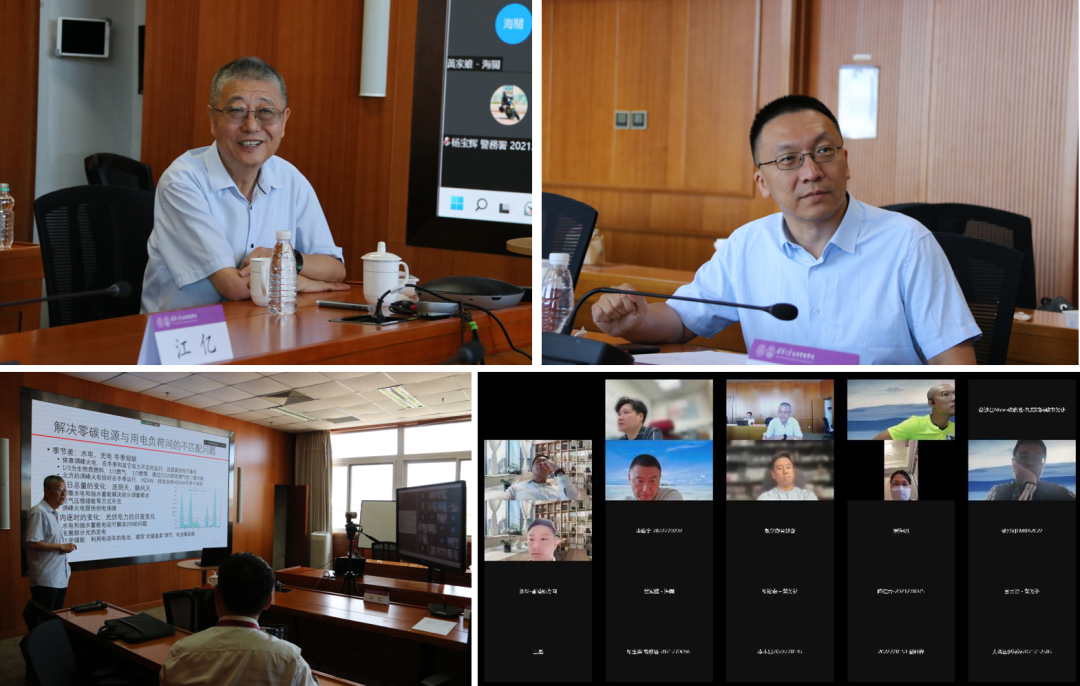 江亿教授(一排左图)主讲高端讲堂、殷成志副院长(一排右图)主持